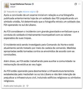 Israel publica mapa de área do Líbano que diz estar sob seu controle