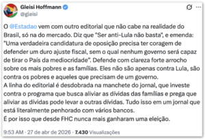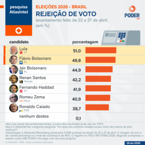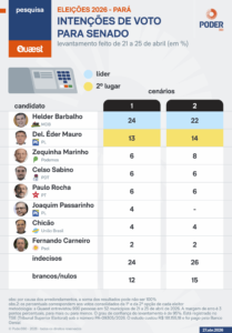 Pesquisa mostra o ex-prefeito do Rio com percentuais de 34% a 40% no 1º turno; em eventual 2º turno contra Douglas Ruas, Paes tem 49% Pesquisa Genial/Quaest divulgada nesta 2ª feira (27.abr.2026) indica que Eduardo Paes (PSD) lidera a corrida …