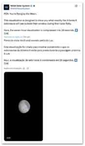 Nasa mostra simulação do sobrevoo da Lua na Artemis 2