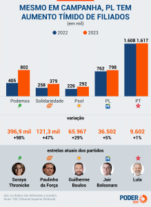 Partido Liberal foi o 4º que mais cresceu no período, com 36.502 novos inscritos; ficou atrás do Podemos, Solidariedade e Psol Mesmo com esforços focados em uma campanha de filiação desde meados de 2023, encabeçada principalmente pelo ex-presidente Jair Bolsonaro …