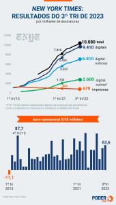 Receita cresceu 9,3% ante o mesmo período de 2022; empresa ganhou 210 mil assinantes digitais de julho a setembro O lucro líquido da New York Times Company subiu 46,4% no 3º trimestre de 2023 em comparação ao mesmo período do …
