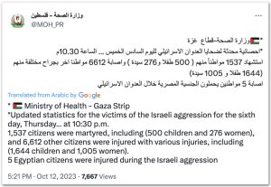 Dados do Ministério da Saúde palestino apontam que cerca de 500 crianças já morreram e outras 1.600 estão feridas O último levantamento do Ministério da Saúde da Palestina informou na 5ª feira (12.out.2023) em publicação no X (antigo Twitter) que …
