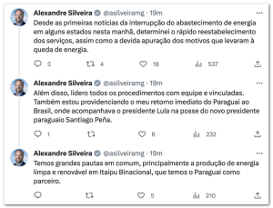 Primeira-dama relacionou indiretamente apagão no país com a privatização da Eletrobras, feita durante o governo Bolsonaro O ministro de Minas e Energia, Alexandre Silveira, afirmou na tarde desta 3ª feira (15.ago.2023) ter achado o comentário da primeira-dama Janja Lula da …
