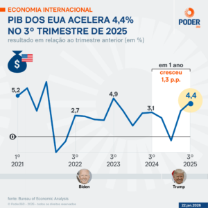 Crescimento anualizado é 0,01 ponto acima da estimativa inicial, fornecida em dezembro; número avança 0,6 p.p ante o 2º trimestre A taxa anualizada do PIB (Produto Interno Bruto) dos EUA avançou 4,4% no 3º trimestre de 2025. É 0,01 ponto …